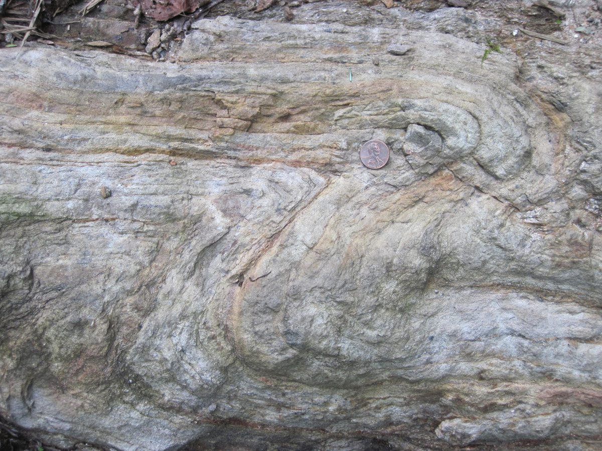 Folded metamorphic rock. Courtesy of the Maine Geological Survey, David West photo.