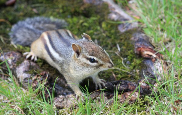 Physical Description: Smaller sized compared to gray squirrels; larger than chipmunks; reddish fur with white underbelly