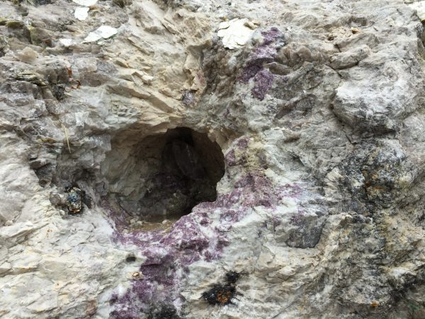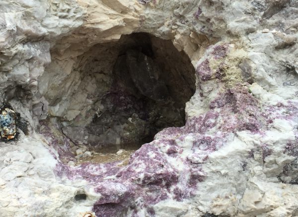 Purple lepidolite at base of pocket, Havey Quarry, Poland, Androscoggin Co.