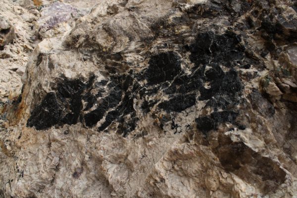 Schorl is the most common species of tourmaline in Maine pegmatites. It typically occurs through all areas of a pegmatite.