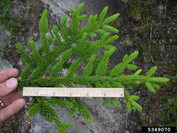 Needles of Red Spruce. Photo courtesy of Keith Kanoti, Maine Forest Service, Bugwood.org.