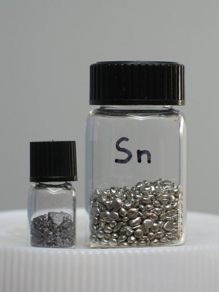 Cassiterite mineral grains. Image from Wikimedia commons.