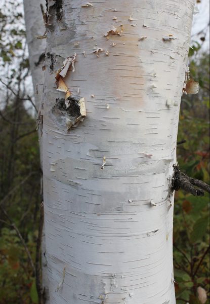 The tree gets its name from its white bark which can be used as paper, “paper birch;” it was also used to make canoes, “canoe birch.”