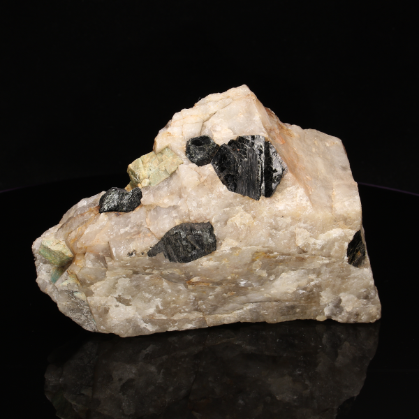Schorl is the most common species of tourmaline in Maine pegmatites. It typically occurs through all areas of a pegmatite.