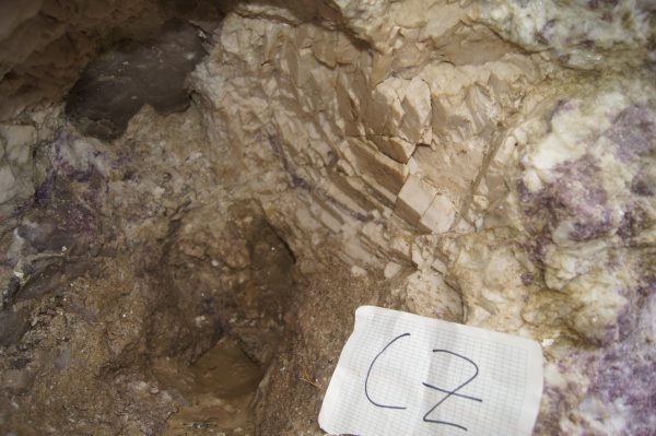 Purple lepidolite at base of pocket, Havey Quarry, Poland, Androscoggin Co.