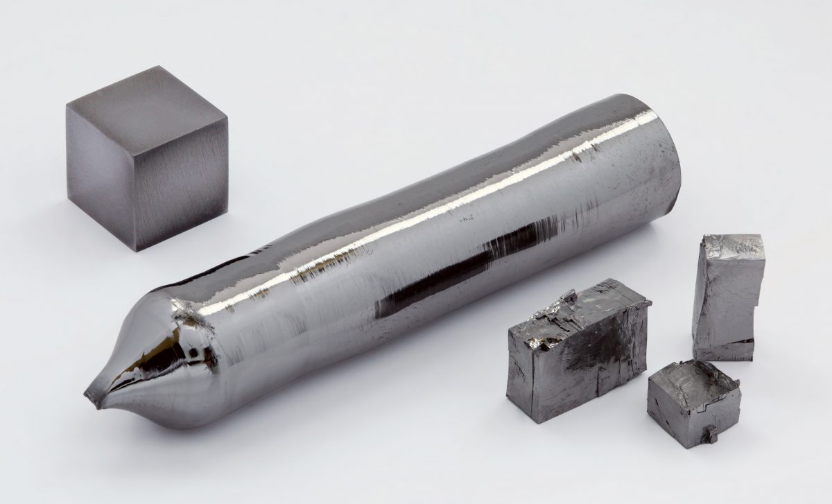 High grade niobium crystals with 1cm cube. Image from Wikimedia commons.