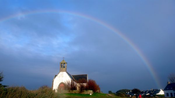 Rainbows are a natural phenomenon which occur when sunlight and rain interact.